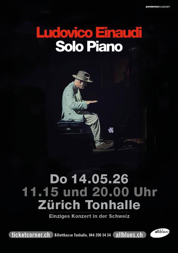 Ludovico Einaudi lädt am Auffahrtstag gleich zwei Mal in die Zürcher Tonhalle ein (11.15 Uhr und 20.00 Uhr). Im eleganten, intimen Rahmen der Tonhalle Zürich erleben Sie ein unverstärktes Piano Solo‑Konzert des italienischen Ausnahme­künstlers. Seit Jahren verfolgt Einaudi seinen Weg: mit minimalistischen Essenzen, getragenen Melodien und einer Klangsprache, die Klassik, Pop und Filmmusik ganz natürlich miteinander verbindet. Wer sich Zeit für Musik nehmen möchte, die leise beginnt und tief wirkt, sollte diese seltene Gelegenheit nicht verpassen. Ein Konzerterlebnis voller Nähe, Klang und Emotion, das lange nachhallen wird.