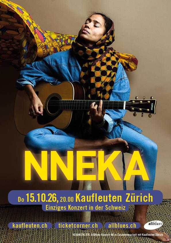 Nneka zählt zu den eindrucksvollsten Stimmen des globalen Soul. Die in Nigeria geborene und in Deutschland lebende Künstlerin vereint Neo-Soul, Hip-Hop, Afrobeat und elektronische Klänge zu einem ganz eigenen Stil – politisch, persönlich, poetisch. Ihr Durchbruch gelang ihr 2008 mit dem Song „Heartbeat“, seither tourte sie weltweit und arbeitete mit Künstlern wie Nas oder Damian Marley. Ihr aktuelles Album Love Supreme entstand in der Stille der Pandemie, eine kraftvolle Reflexion über Selbstfindung, Spiritualität und gesellschaftliche Themen. 2026 kehrt Nneka mit neuem Material ins Kaufleuten Zürich zurück: intensiv, bewegend und zutiefst menschlich.