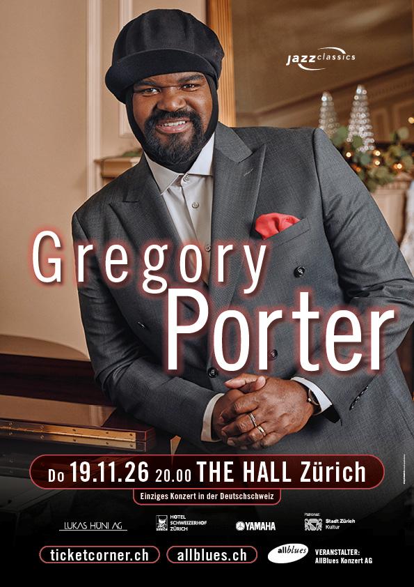 Wenn Gregory Porter, der Hüne mit der Ballonmütze und der raumfüllenden warmen Baritonstimme - zur Zeit der erfolgreichste Jazzsänger überhaupt - die Bühne betritt, wird es still und dann ganz weit. Mit seiner Ausstrahlung voller Charisma hat sich der zweifache Grammy-Preisträger längst in die Herzen eines weltweiten Publikums gesungen. In seinem bewährten Sextet bringt er nun den unverwechselbaren Mix aus Jazz, Soul und Gospel, seine kraftvollen Songs voller Groove, Tiefe und musikalischer Eleganz nach Zürich. Wer ehrliche Musik mit Seele, Rhythmus und grosser Bühnenpräsenz liebt, sollte sich dieses Konzerterlebnis nicht entgehen lassen, live und exklusiv in The Hall.
